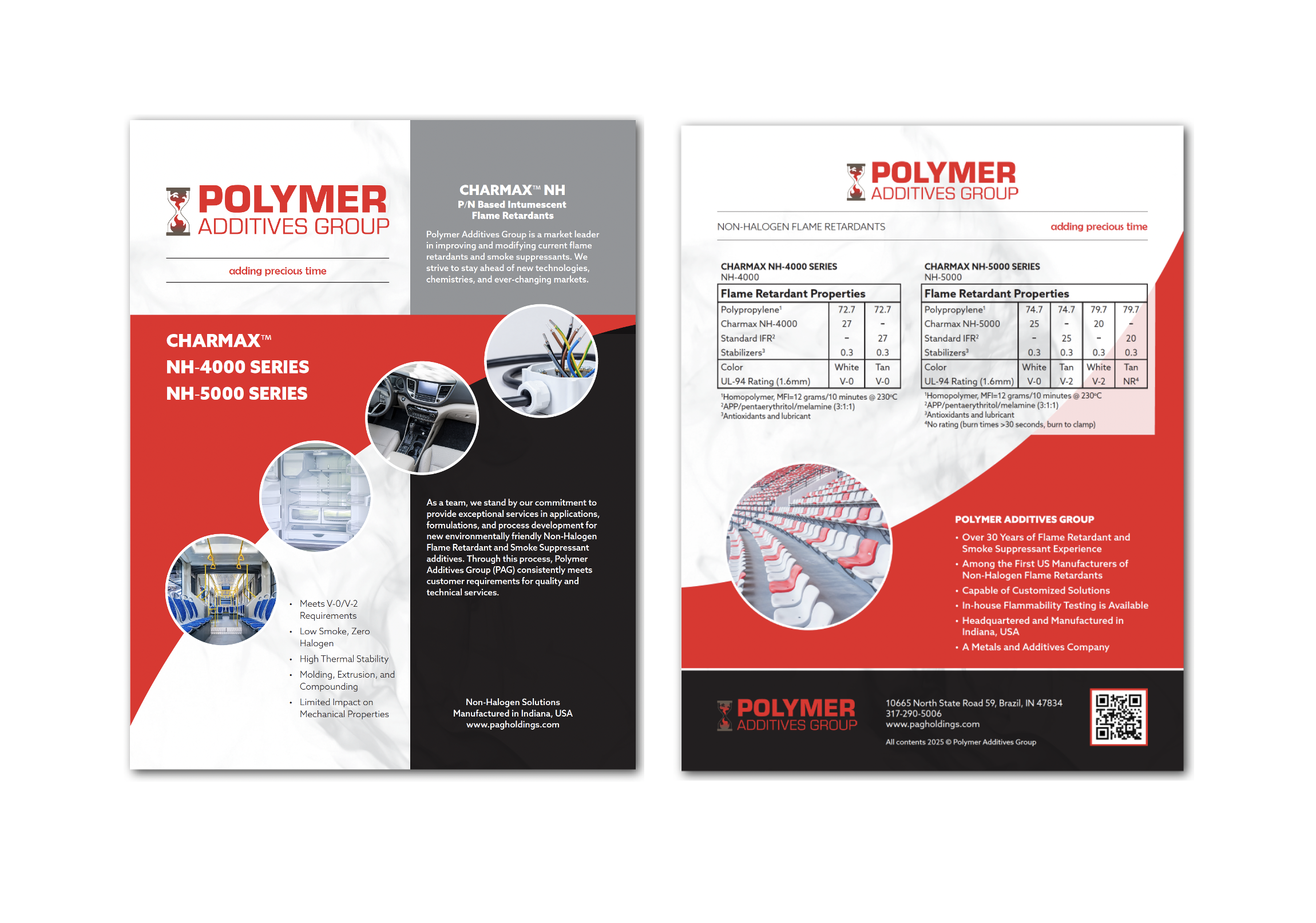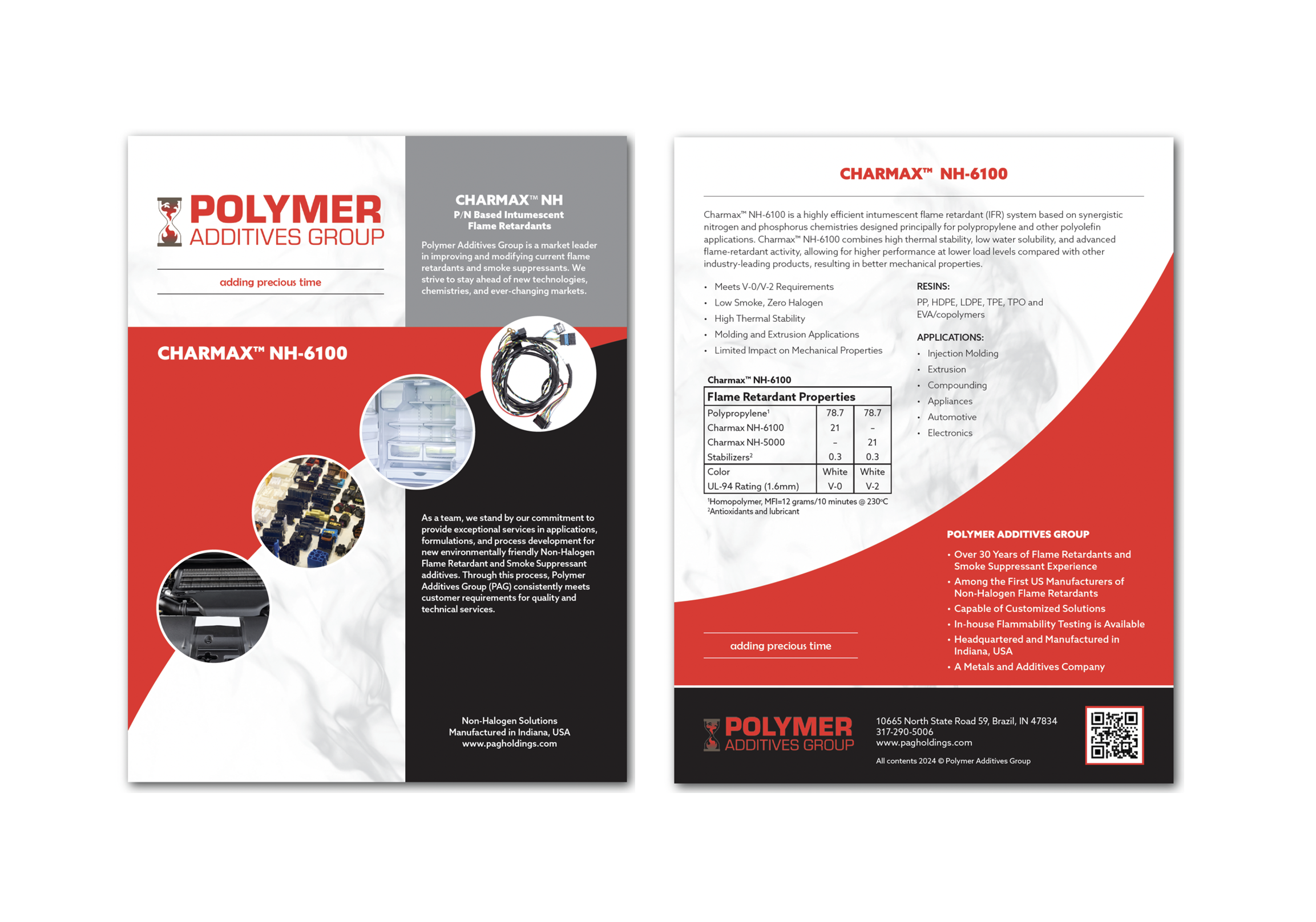 Polymer Additives Group (PAG) is a leading US flame retardant and smoke suppressant additives manufacturer with global coverage. Their customers are served from an ISO manufacturing facility in Brazil, Indiana, where the company’s focus is on broad-based and niche solutions to meet industry demands. Capabilities include wet and dry chemical processes, various packaging options, and a desire to create custom solutions to meet individual customer needs. PAG offers an extensive line of Charmax™ flame retardants, smoke suppressants, and innovative technologies to address the industry’s evolving regulatory and performance requirements.